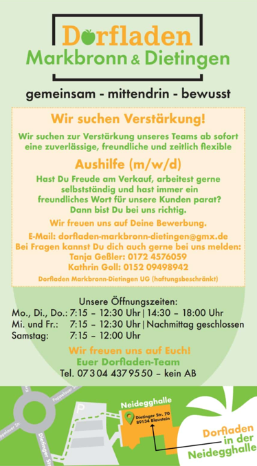 Willkommen beim Dorfladen Markbronn-Dietingen UG